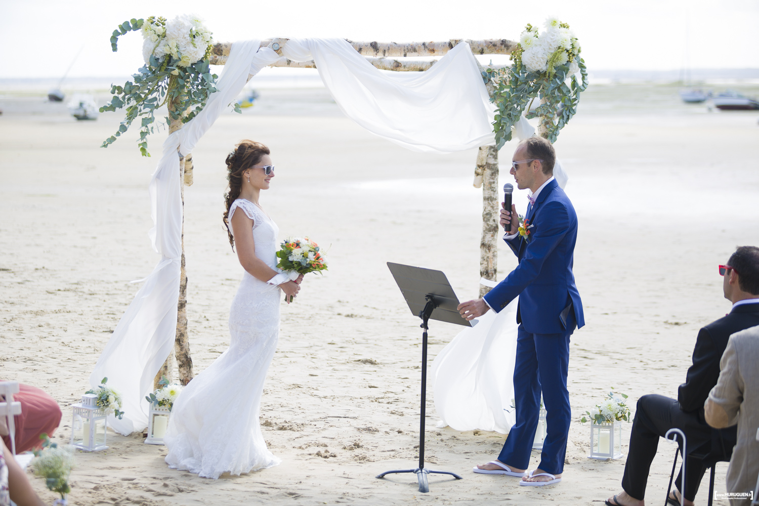 C’est donc en tongs que les invités ont pris place pour assister à cette superbe cérémonie orchestrée par l’officiante Aurélie Cousseau.